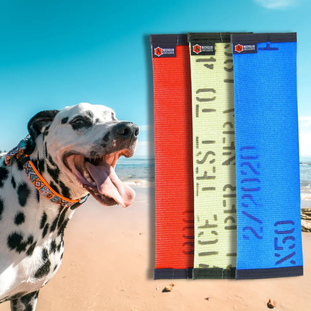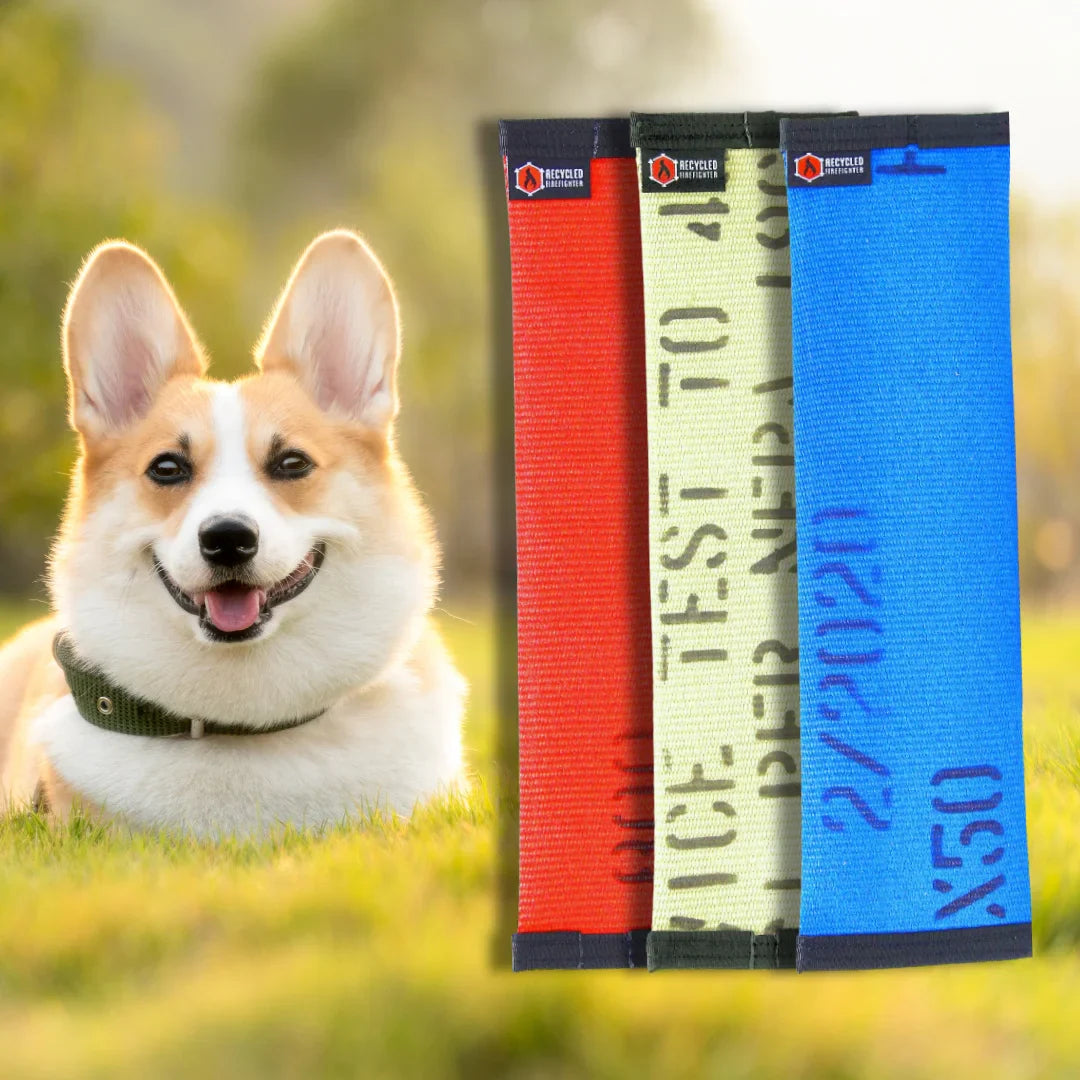 Crafted from decommissioned 1.75" polyester fire hose, these rugged dog toys are built for dogs who play hard. The hoses used are new and unused—they’ve never been through a fire. Some were taken out of commission due to minor defects like leaks, making them unsuitable for firefighting but perfect for repurposing into something your dog will love.